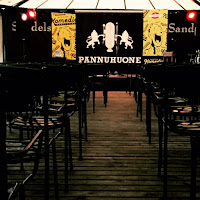 Pannuhuoneen stagemanagerina toimi Seppälän Janne, joka hoiti koko festivaalien väliaikakuulutukset, infosi koomikot ajallaan lavalle ja sieltä pois. Hieno mies ja hienoa toimintaa. Guru!
